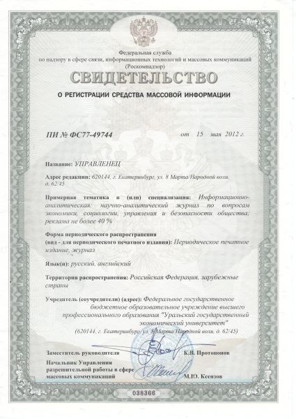 «Управленец»JEL Classification «Управленец»